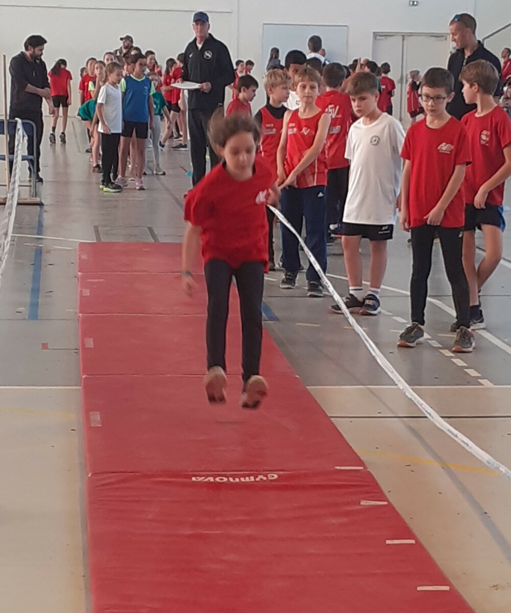 Les enfants de la catégorie éveil ont pu découvrir et tester plusieurs ateliers : sauts, lancers et courses.